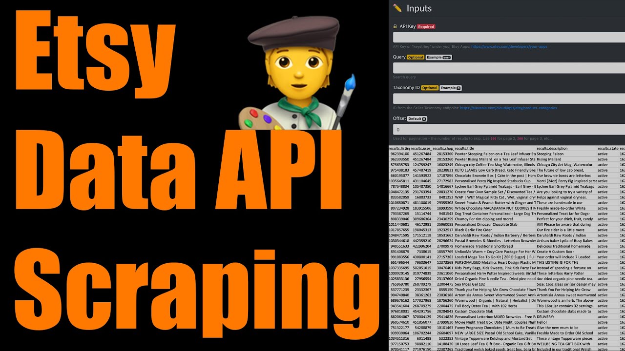 The most challenging step in scraping Etsy data will be obtaining an API key, as you must apply for one and wait a few days - so start now!