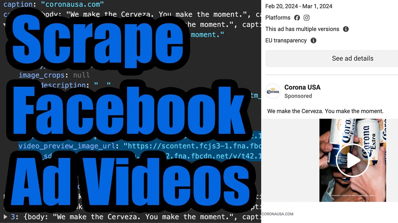 If you want to know how to download video from Facebook Ads library, we’ll walk through an additional collection you can look for in the HAR File Web scraper that will contain links to the image previews and full HD versions of the videos used in ads, so you can download video ads locally for your own analysis & discussion.